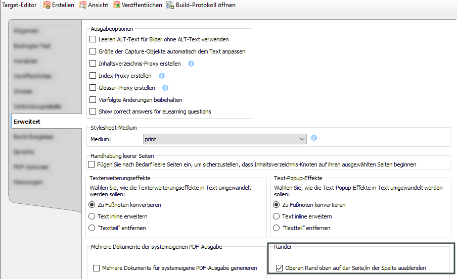 Option Oberen Rand oben auf der Seite/in der Spalte ausblenden wählen