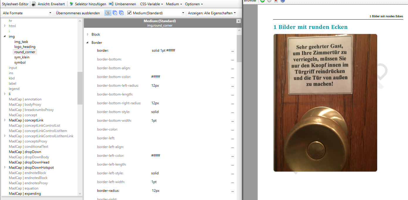 Die Ecken von Bildern sollen in der Ausgabe abgerundet werden.