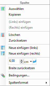 Spaltenbreite über die Tabellenformatvorlage oder über Kontextmenü auf Strukturbalken