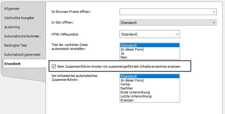 Wenn untergeordnete TOCs in ein Primary TOC gemergt werden, soll für den Benutzer direkt das Topic aus dem untergeordneten TOC angezeigt werden. Leere Ebenen in der HTML5-Ausgabe sollen vermieden werden.