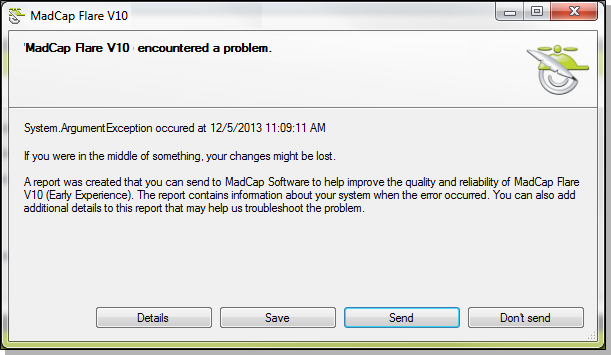 Send: Sendet den Crash-Report an MadCap Software zur Analyse