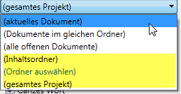 Suchen in Dateitypen (gelb markierte: Neu in Flare V10):