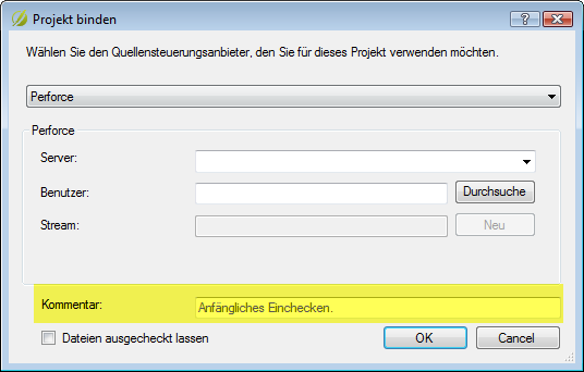 Ab Flare V10 können beim Binden von Flare-Projekten an ein Versionierungssystem Kommentare eingeben.