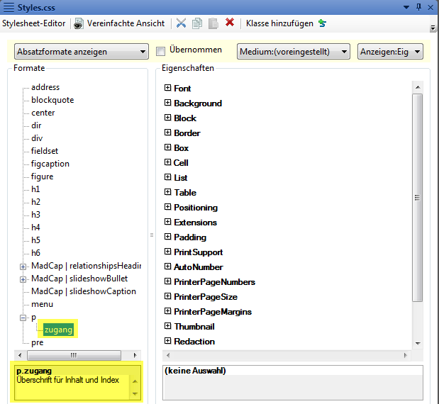 Content Explorer > Resources > StyleSheets > eine CSS (keine Tabellen-CSS) öffnen > Vereinfachte Ansicht.