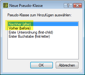 Bislang mussten die Pseudo-Klassen before / after im Quellcode der CSS-Datei eingegeben werden.