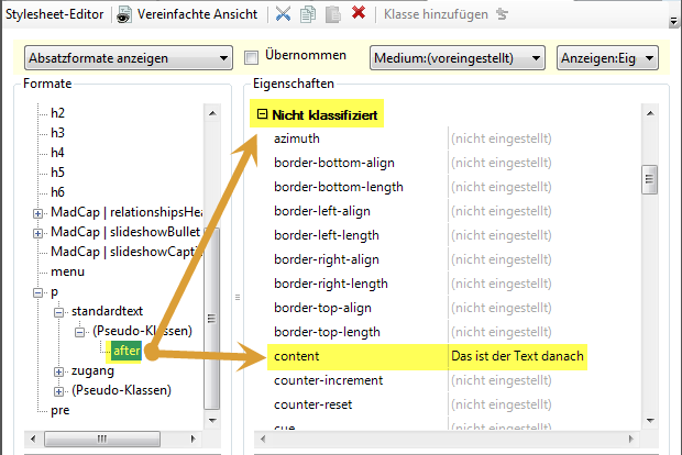 Im Gruppenfeld Formate auf einem Element Rechtsklick , für das eine Pseudoklasse after / before angelegt werden soll > Pseudeoklasse hinzufügen.