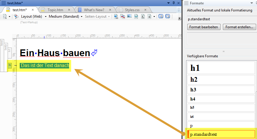 Formatvorlage in einem Topic / Snippet zuweisen: