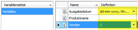 - In der Spalte Definition einen Wert für die Variable eingeben.