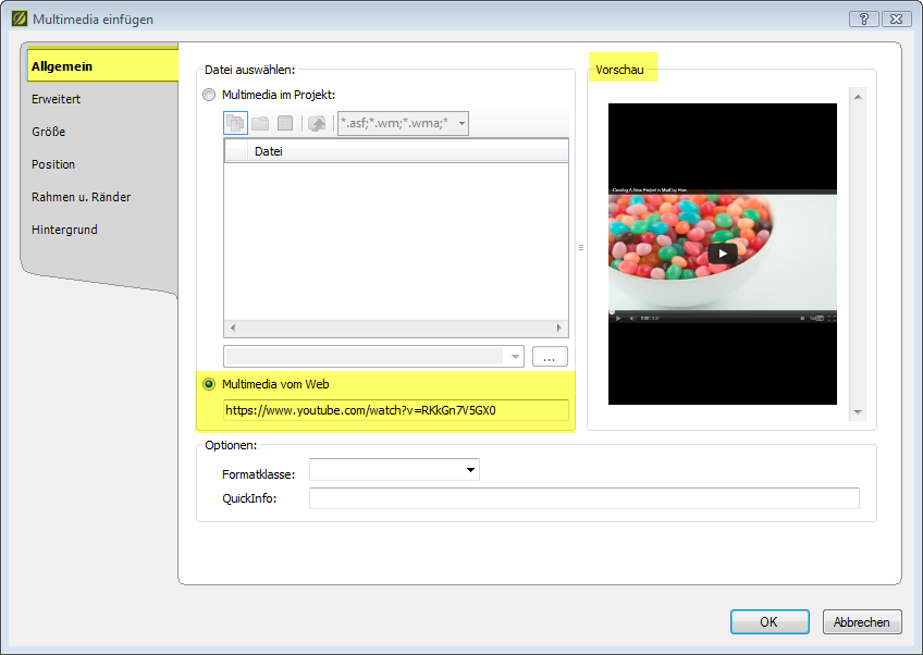 YouTube-/Vimeo-Videos werden jetzt dergestalt unterstützt, dass sie in Topics / Codeausschnitte (Snippets) eingebettet oder von diesen verlinkt werden können. Das Einbetten kann für die Ausgabeformate WebHelp und HTML5 genutzt werden. Andere Ausgabeformate, insbesondere Druckausgaben, werden naturgemäß nicht unterstützt.