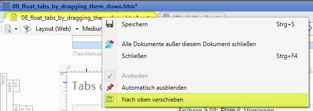 Tab abdocken: Rechtsklick auf dem Tab > Nach oben verschieben. Anschließend mit drag & drop zum Andocken verschieben. Zum Vergrößern / Verkleinern auf das Bild klicken |