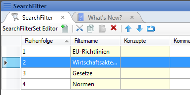 Die Reihenfolge kann im Suchfilter-Editor beliebig festgelegt werden. Die Reihenfolge wird im Suchfilter-Editor festgelegt: Project Organizer > Erweitert > Search Filters > eine Datei mit Suchfiltern öffnen: