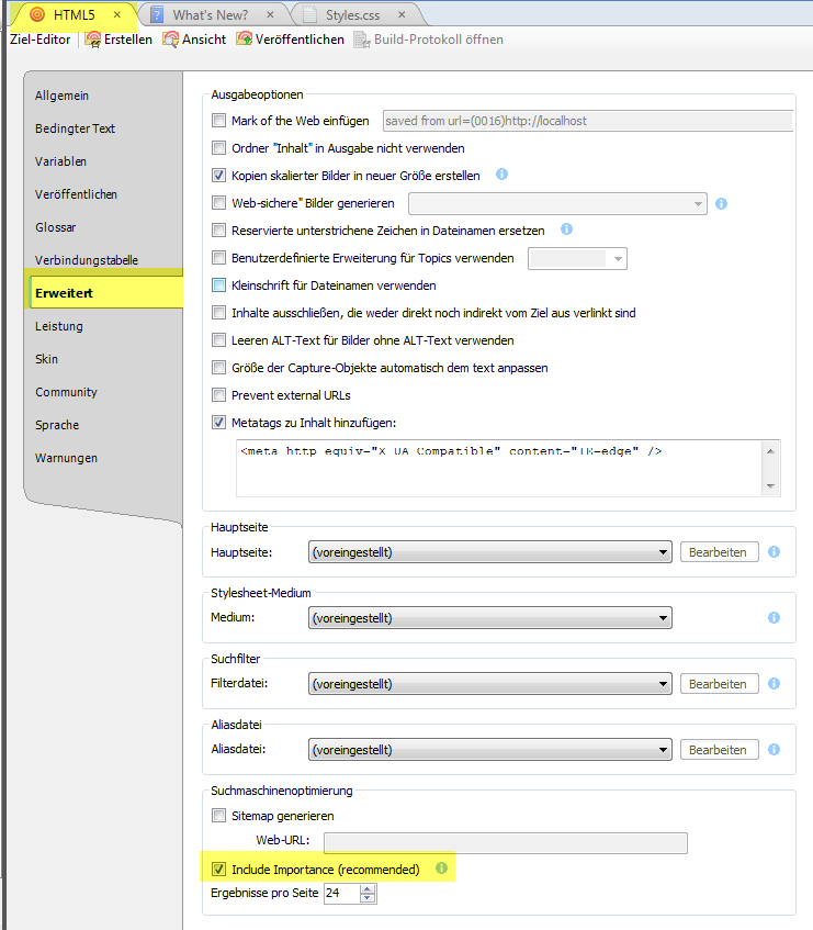 Die Suchfunktion der HTML5-Ausgabe wurde erheblich verbessert. Ab jetzt wird die Relevanz und Wichtigkeit von Topics bei der Platzierung von Topics in der Trefferliste berücksichtigt.