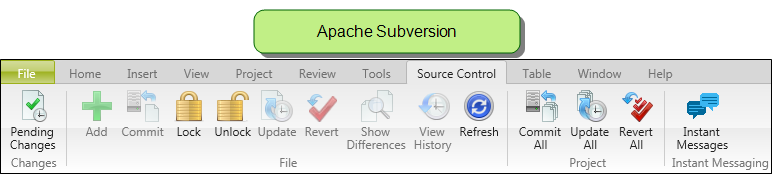 Unabhängig davon, an welche Versionskontrolle ein MadCap Flare-Projekt angebunden ist, wird immer dieselbe Symbolleiste mit denselben Symbolbezeichnungen angezeigt. Dies führt zu Irritationen. Beispiel: Einchecken heißt bei Verwendung von Subversion Commit. |