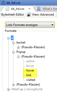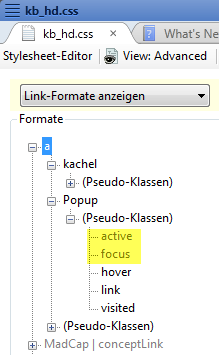 Im CSS-Editor (Content Explorer > Resources > Stylesheets > .CSS) wird angezeigt, welche Ansicht eingestellt ist.
