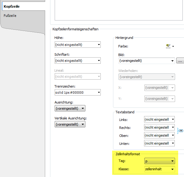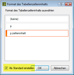 Jetzt kann festgelegt werden, dass in jede Tabellenzelle einer neu angelegten oder bestehenden Tabelle automatisch das p-Element eingefügt wird.