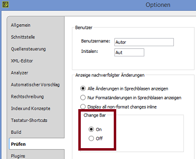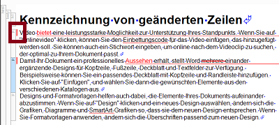 Wenn Sie die Funktion Änderungen nachverfolgen nutzen, können Sie die geänderten Zeilen mit einem vertikalen Balken kennzeichnen.