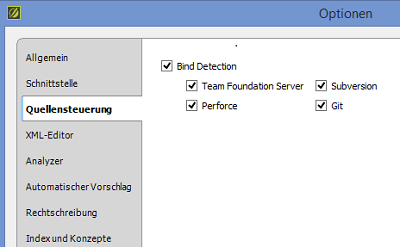 Die Verbindungserkennung hinterlegen Sie in den Optionen > Register Quellensteuerung.