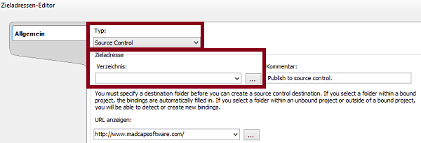 Im Ziel die Zieladresse zuweisen: Ziel-Editor > Register Veröffentlichen