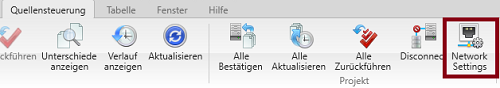 Dialog Netzwerkeinstellungen öffnen: z. B. Menü Quellensteuerung > Bereich Projekt > Netzwerkeinstellungen