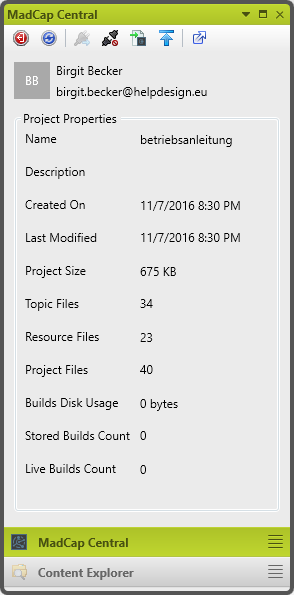 MadCap Central ist eine cloud-basierte Plattform über die Sie MadCap Flare-Projekte anbinden und ausgeben können. MadCap Central ermöglicht eine Versionierung von Dateien und das Erstellen und Zuweisen von Aufgaben. Sie können Benutzergruppen anlegen und verwalten – inklusive einer Rechteverwaltung. Mehr Informationen zu MadCap Central finden Sie hier Software-Hilfe MadCap Central. Sie können sich über das neu geschaffene Fenster in Flare direkt in MadCap Central anmelden.