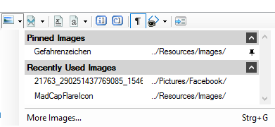 Vergleichbar zum Anheften der Formatvorlagen und Snippets können Sie nun auch Bilder anheften. Angeheftete Bilder sind mit dem Symbol
