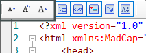 Im Text-Editor können Sie die Schriftgröße des Quellcodes ändern. In der Toolbar stehen dafür drei neue Symbole zur Verfügung.
