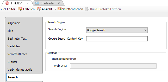Alternativ zur MadCap-Suche können Sie die Google-Suche für die HTML5 Top Navigation Ausgabe verwenden.