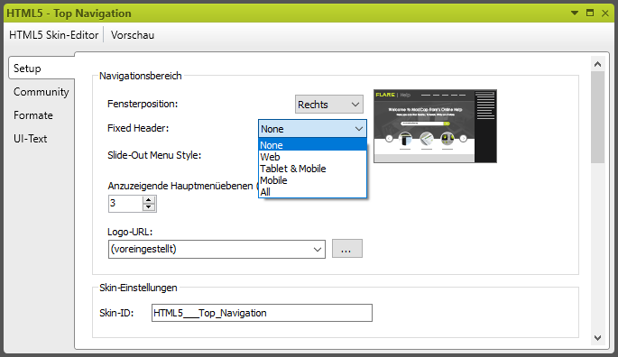 Skin öffnen: Projekt Organizer > Skins> gewünschte HTML5 Top Navigation-Skin doppelklicken