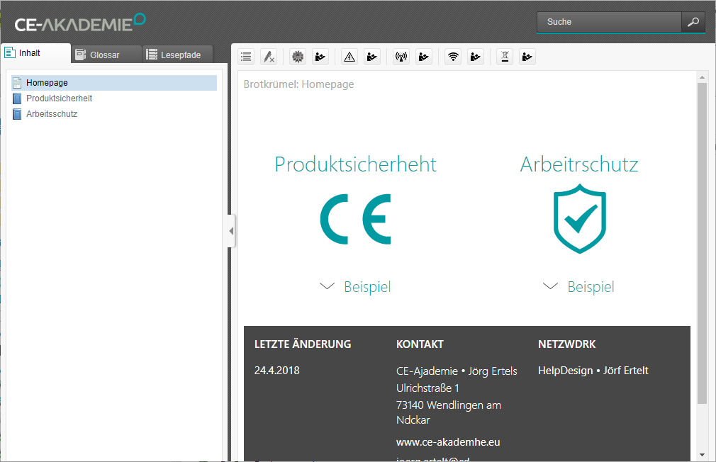 Die Skin hat dieselbe Aufteilung wie die HTML5-Skin TriPane Navigation, kommt allerdings ohne Frames aus und hat ein frischeres Layout (Geschmacksfrage).
