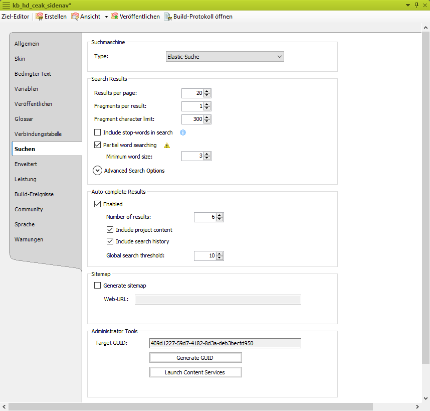 In früheren Versionen konnten Sie für die HTML5-Ausgabe (Top und Side Navigation) die MadCap-Suche oder die Google-Suche verwenden.