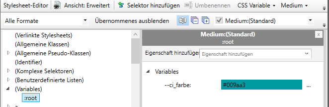 Mit einer CSS-Variablen können Sie den Wert für eine Formatvorlage an einer Stelle platzieren und in einem Stylesheet wiederverwenden, z. B. für Farben.