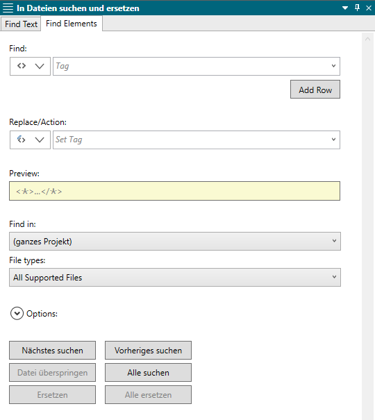 Fenster In Dateien suchen und ersetzen öffnen: Menü Home > Abschnitt Suchen und Ersetzen > Find and Replace