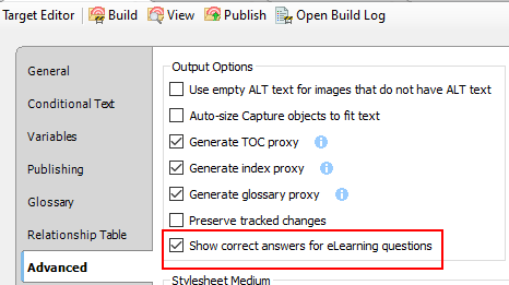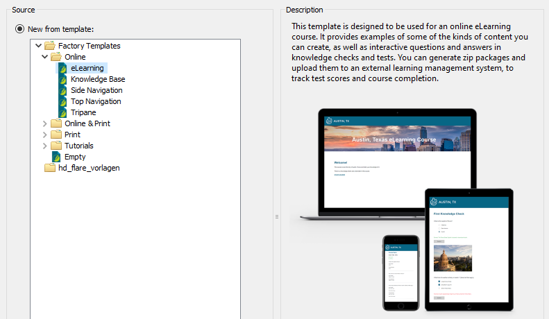 In MadCap Flare stehen nun Funktionen im Bereich Lernen und Entwicklung (L&D) zur Verfügung. Damit können Sie interaktive E-Learning-Kurse erstellen, verwalten und ausgeben. Im Gegensatz zu Tools, die ausschließlich E-Learning-Funktionen enthalten, können Sie mit MadCap Flare die neuen Funktionen mit bekannten Funktionen kombinieren, z. B. mit Snippets, Variablen, Bedingungen usw. Dadurch können Sie Single Source Publishing umsetzen.