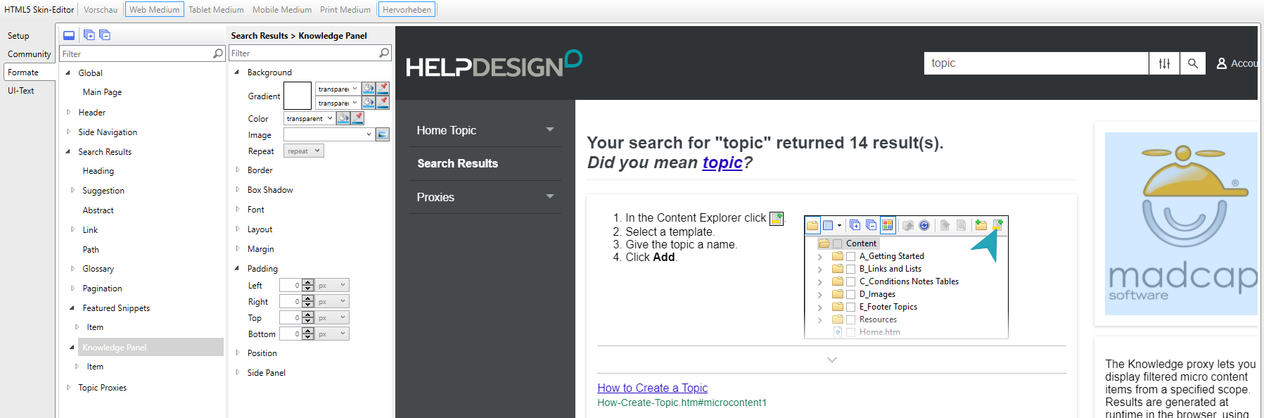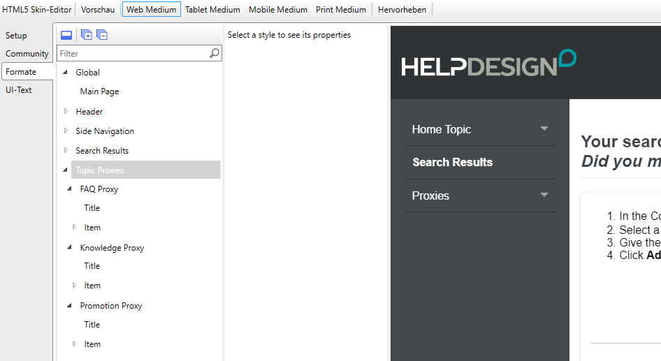 Im Abschnitt Topic-Proxies im Register Styles können Sie das Aussehen und das Verhalten von Inhalten zu steuern, die mit einem Proxy für häufig gestellte Fragen, Wissen oder Werbung verknüpft sind.