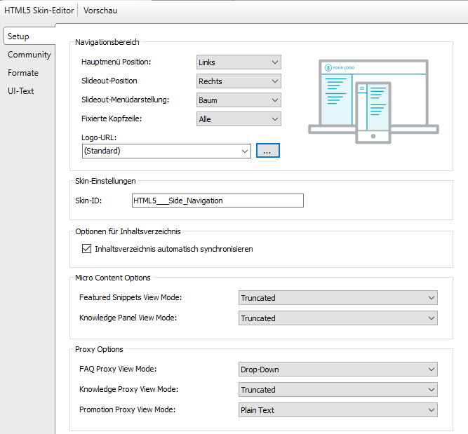 Weitere Einstellmöglichkeiten für die Proxies finden Sie im Abschnitt Setup des Skin-Editors.