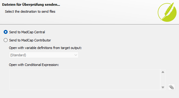 MadCap Flare bietet die Möglichkeit, Review-Pakete zu erzeugen. Dabei werden mehrere Dateien, Topics und Snippets in einem Paket wahlweise an MadCap Central oder an MadCap Contributor versendet. Review-Pakete bieten verbesserte Überprüfungsworkflows mit mehr kontextbezogenen Inhalten für Reviewer. Zusätzlich zum Review und Bearbeiten von Dokumenten können die Eigentümer den Überprüfungsprozess besser verwalten, sobald die Pakete in MadCap Central sind. So können sie beispielsweise den Fortschritt einer Prüfung verfolgen und den Status von Dateien, Paketen und Prüfern überprüfen.