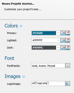 Sie können beim Anlegen eines neuen Projektes das Branding gleich beim Erstellen festlegen. In bestehenden Projekten können Sie ein neues Branding Stylesheet hinzufügen.