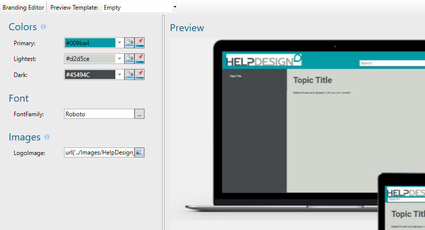 Diese neue Funktion bietet eine praktische Möglichkeit, einem Projekt ein Branding hinzuzufügen. Ohne großen Aufwand können Sie gängige Branding-Elemente (z. B. Logo, Schriftart, Farbpalette) festlegen, um die Ausgabe an das Corporate Design Ihres Unternehmens anzupassen.