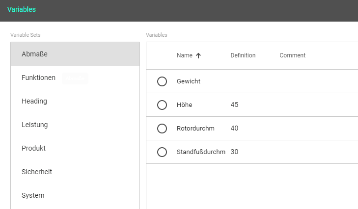 Variablen einfügen und bearbeiten